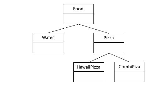 예를 들어 아래 상속관계를 그린 아래 이미지를 보자. T를 Food class로 지정 시 Food 클래스를 상속한 Water, Pizza, HawaiiPizza, CombiPizza 모두 사용가능하다.